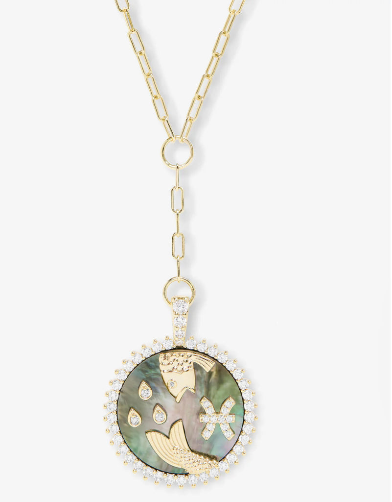 Melinda Maria Zodiac Medallion Necklace Pisces