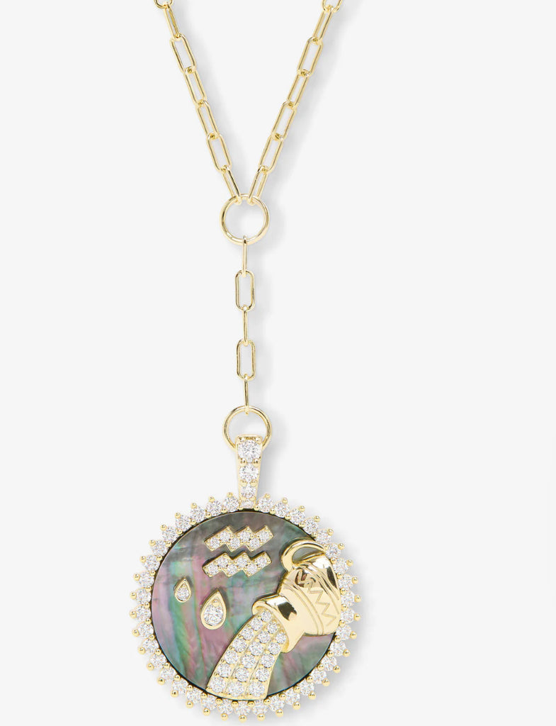 Melinda Maria Zodiac Medallion Necklace Aquarius