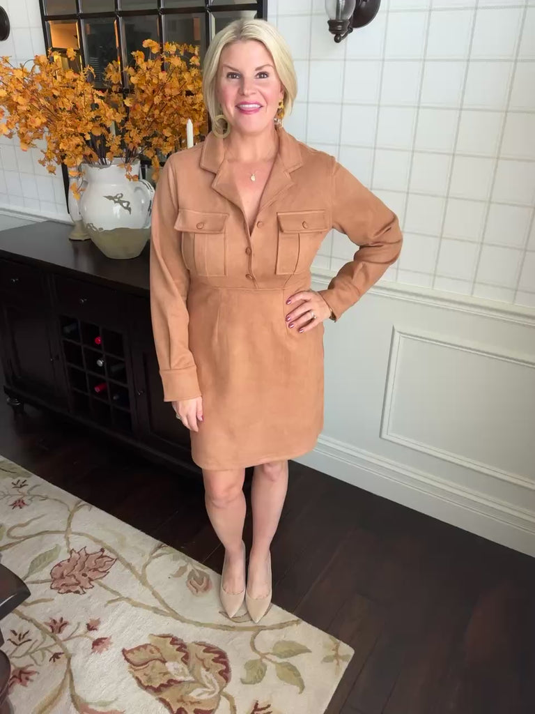 Roya Dress in Camel Suede - XS is backordered. It will be shipped when back in stock.