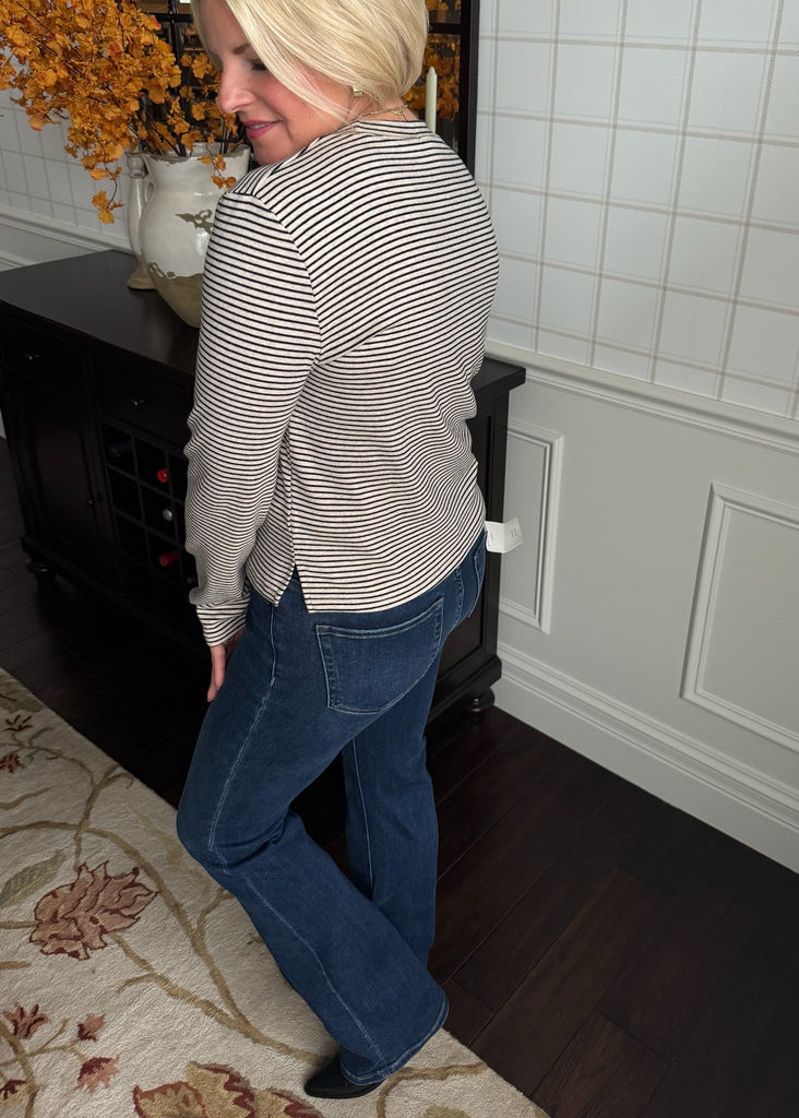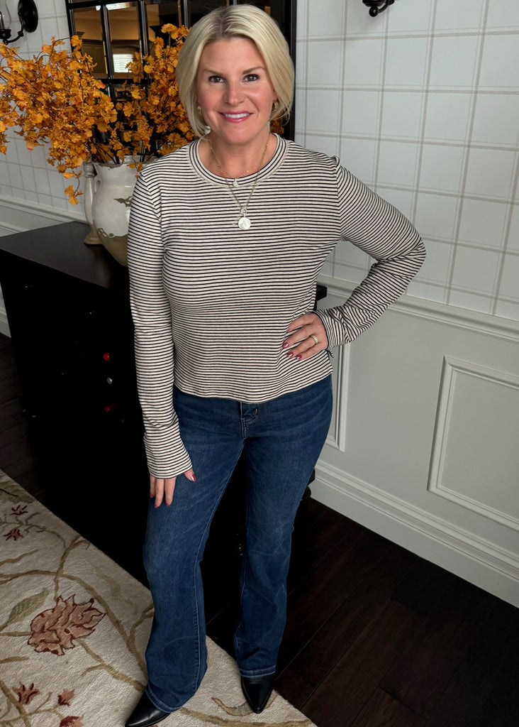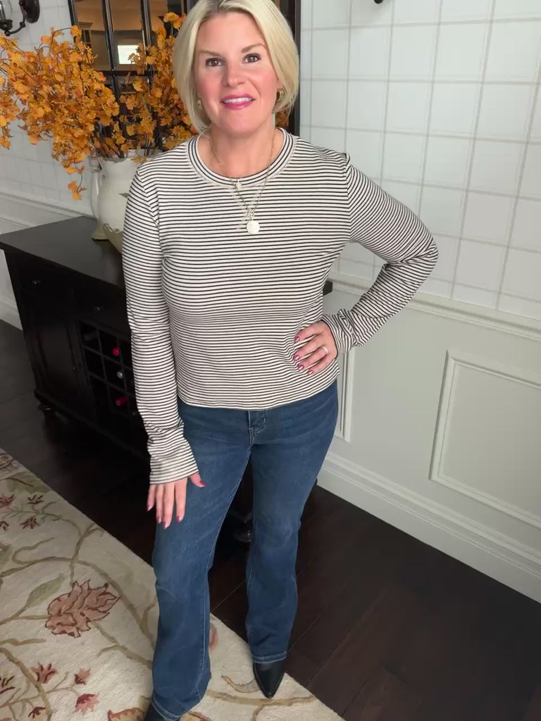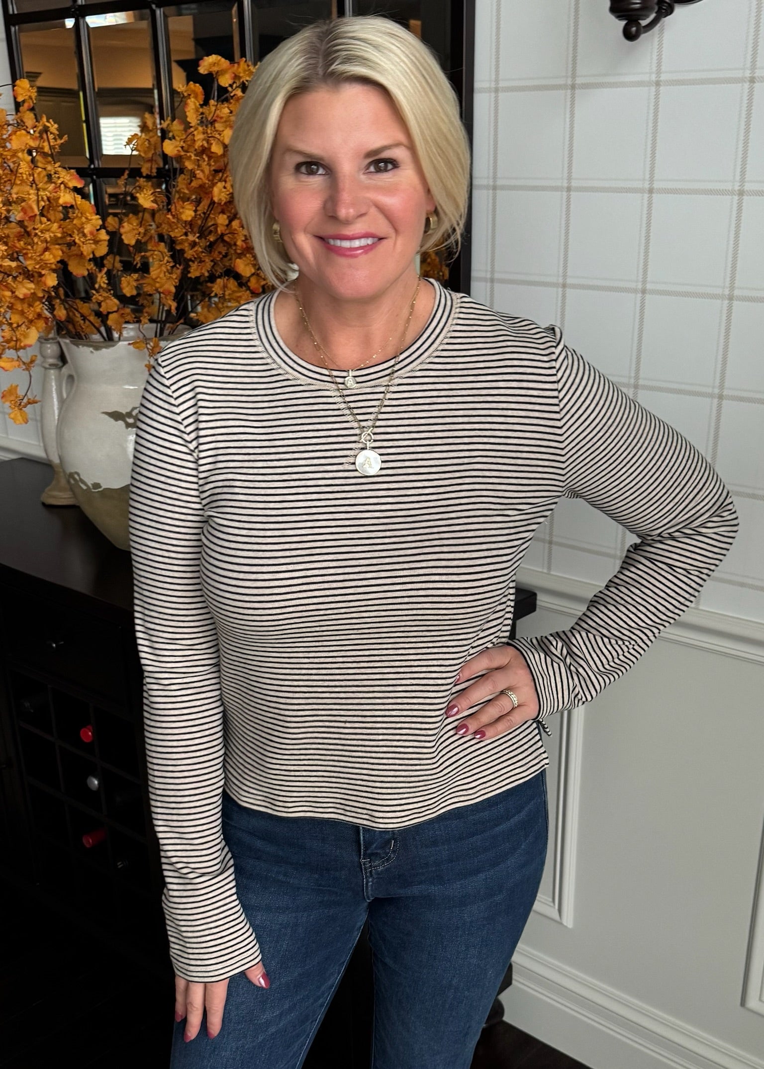 Ecru and Black Striped Casual Tee - Small is backordered. It will be shipped when back in stock.