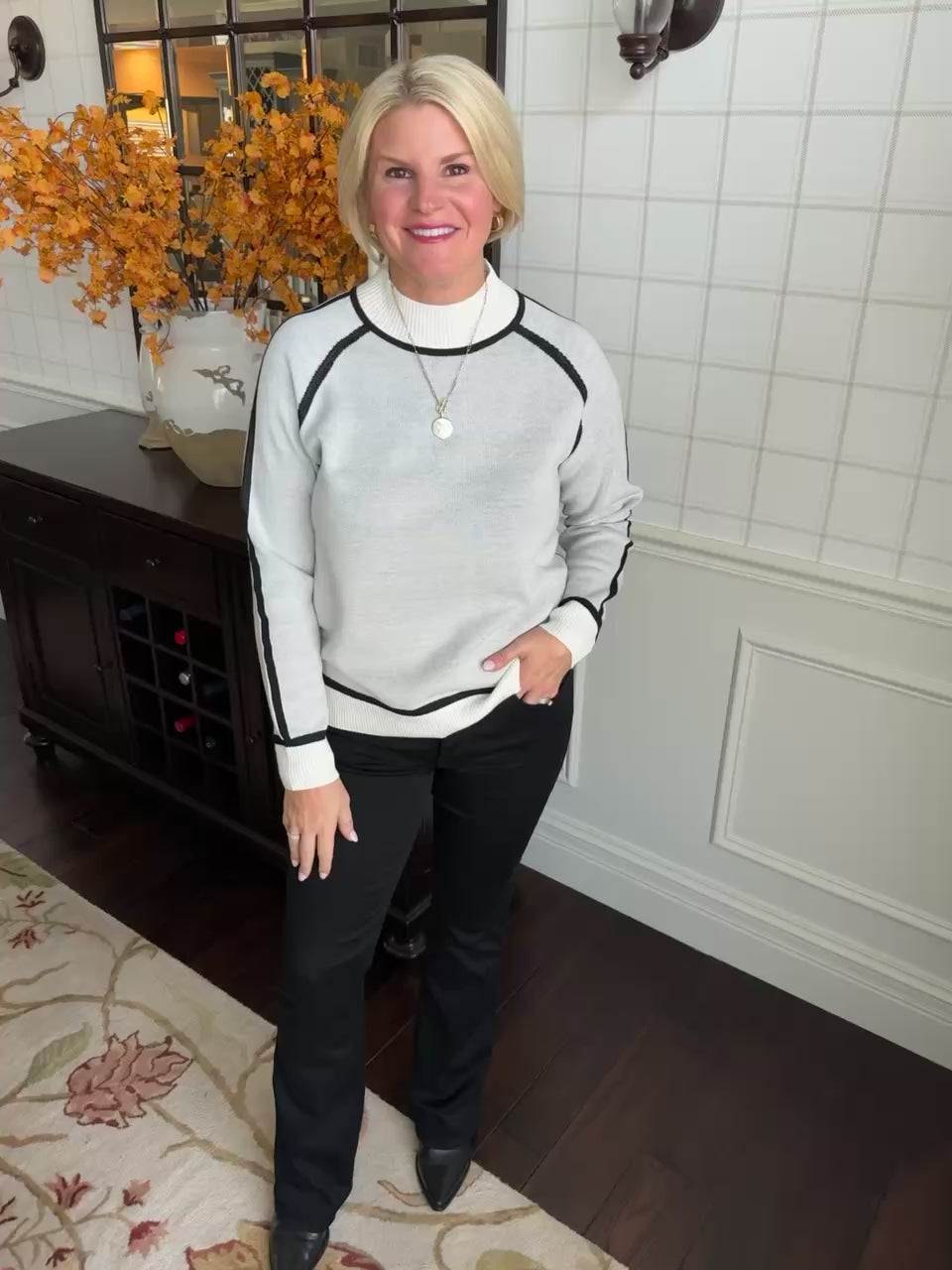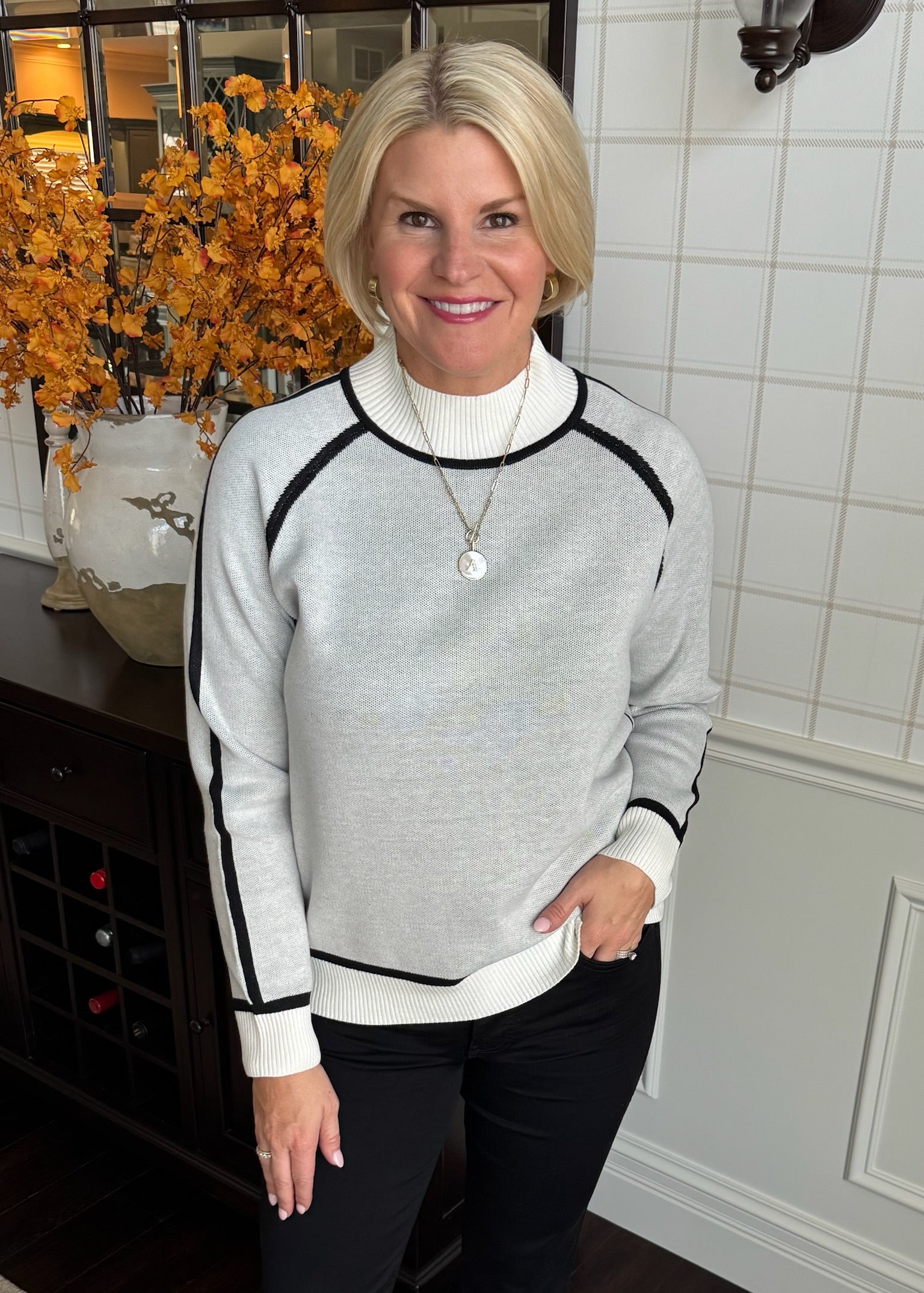 Cream and Black Mock Neck Sweater – On the Go Boutique LLC Skip to content