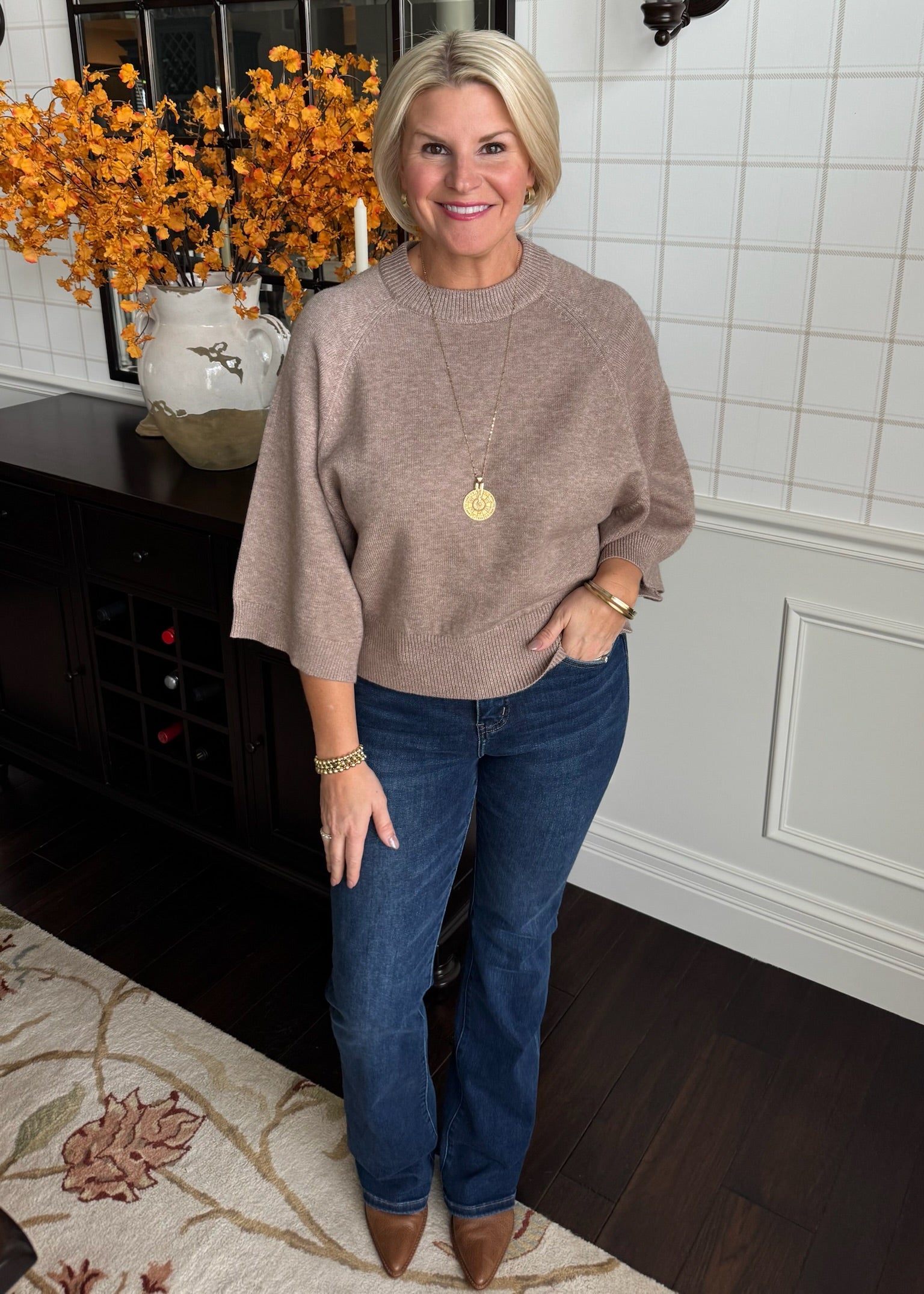 Love the wide 3/4 sleeves on this sweater. Such a great basic.