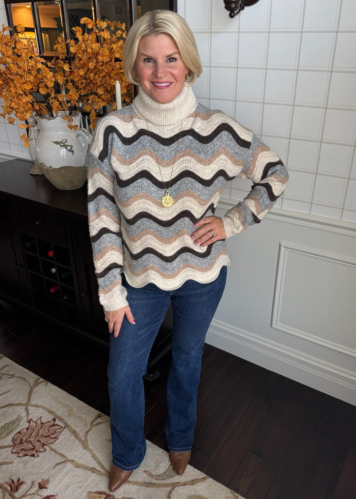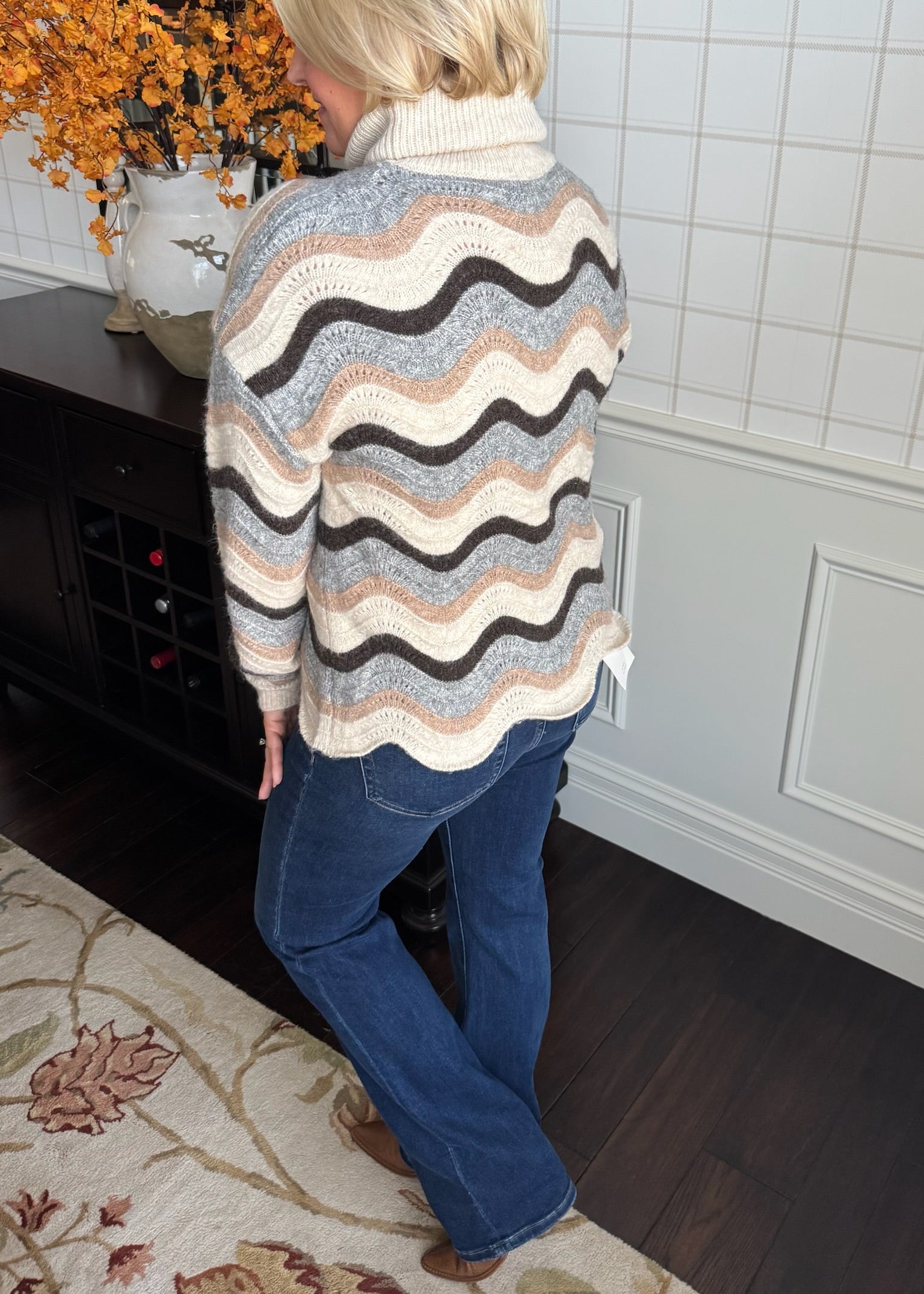 Wave Striped Turtle Neck Sweater - Small is backordered. It will be shipped when back in stock.