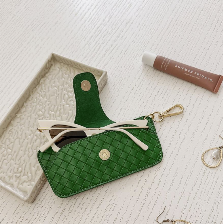 The Louenhide Skittle Pistachio Sunglass Case is the perfect blend of style and functionality for your everyday eyewear. For ultimate convenience, effortlessly attach to your keys or handbag with the light gold hardware keyring clasp. Without compromising on style, the exterior features a gorgeous vegan leather, while the interior is lined with soft suede material to keep your everyday eyewear protected. Whether it's your favourite sunglasses or your reading glasses, they will stay protected and safe with the secure metal clasp. Designed in many gorgeous shades to suit everyone's style, the Skittle Pistachio Sunglass Case makes the perfect gift for any occasion.
