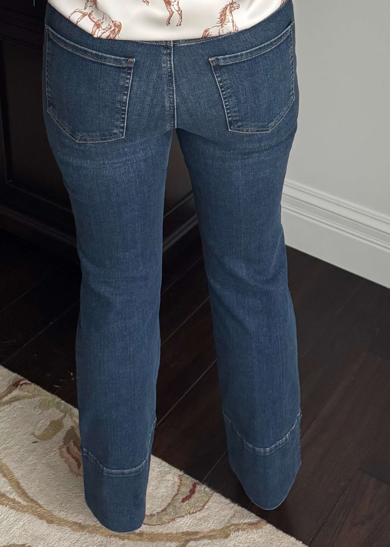 - Flared leg silhouette