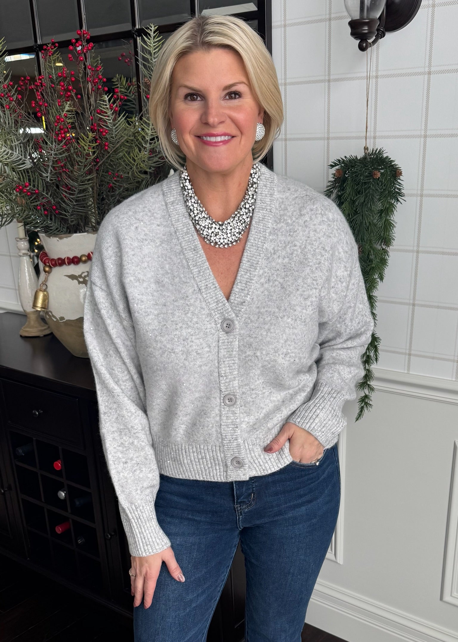 Silver Shimmer Cardi – On the Go Boutique LLC Skip to content