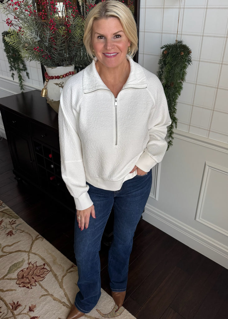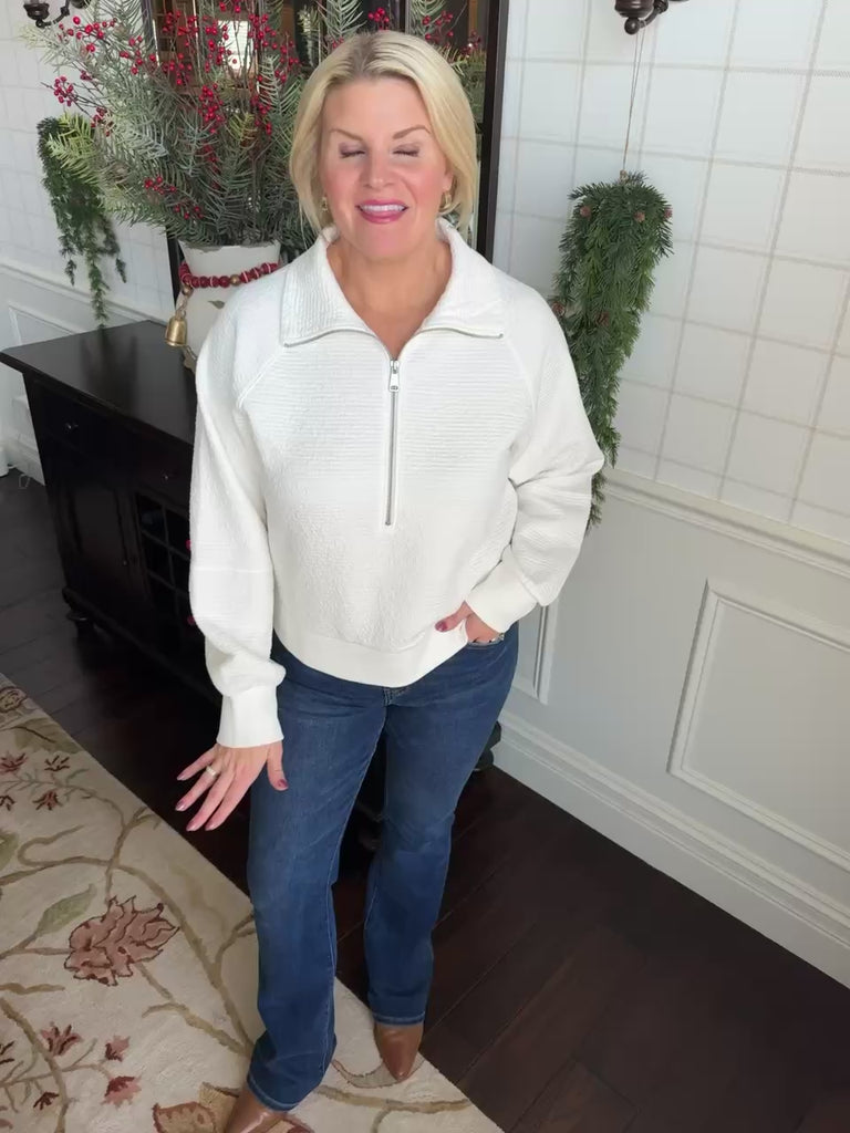 This zip up pullover is so so soft! Such a quality piece.