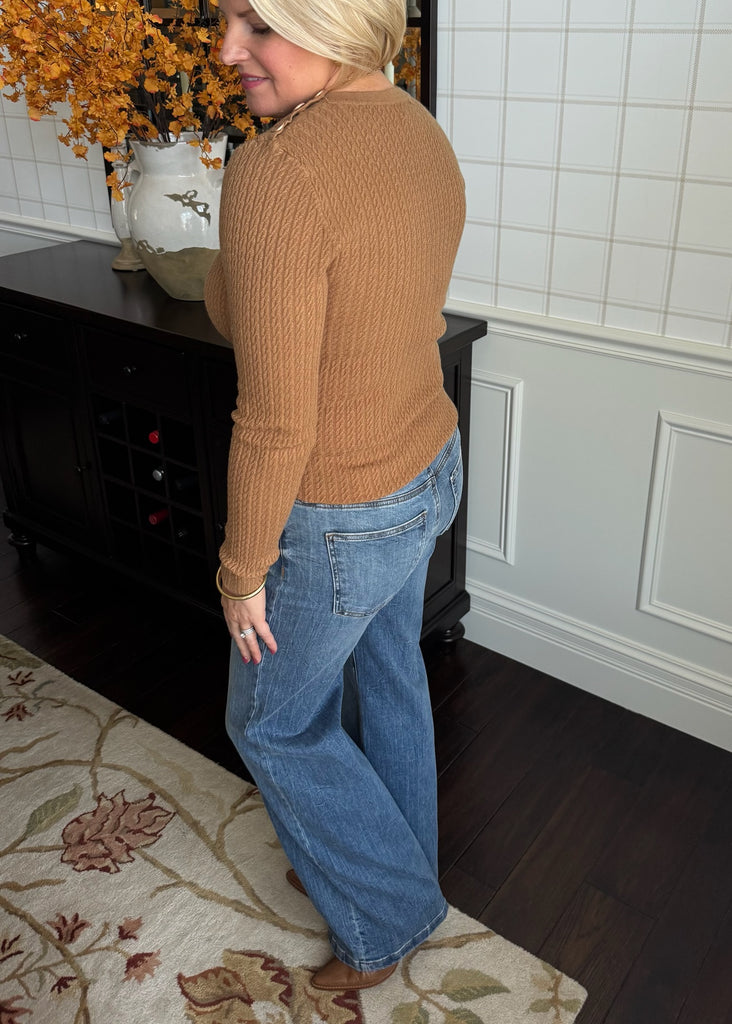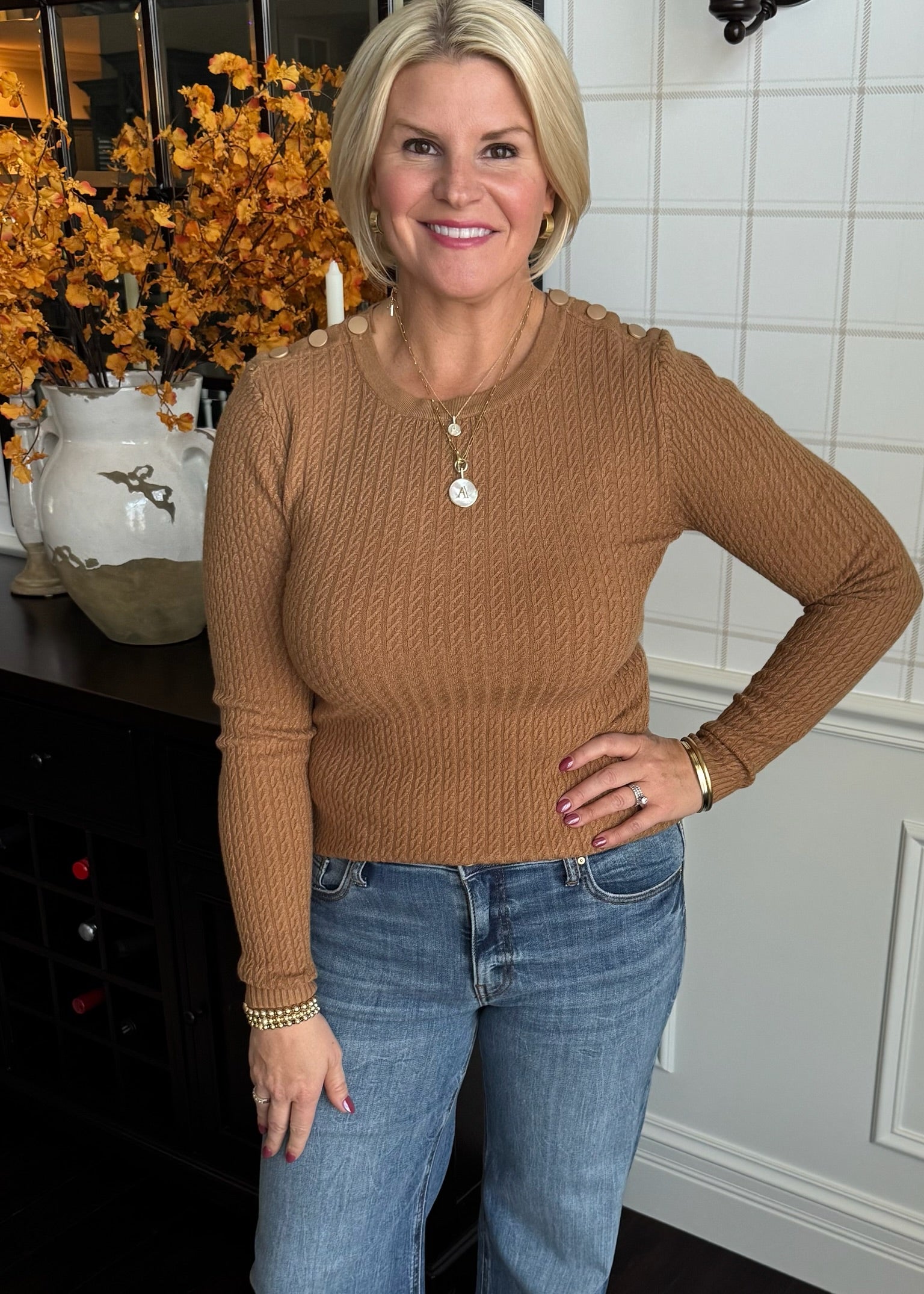 Camel Cable Knit Sweater - S is backordered. It will be shipped when back in stock.