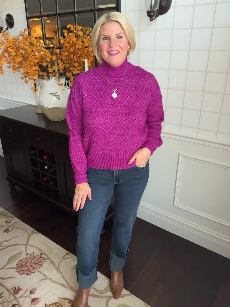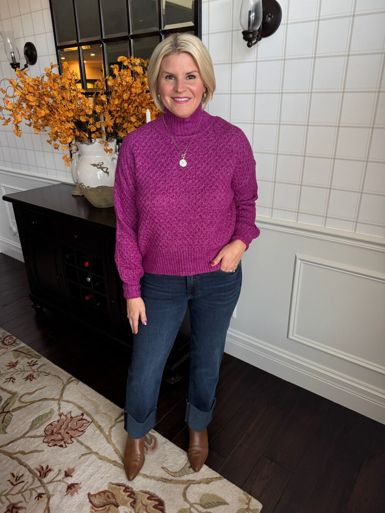 Mock Neck Fuschia Sweater