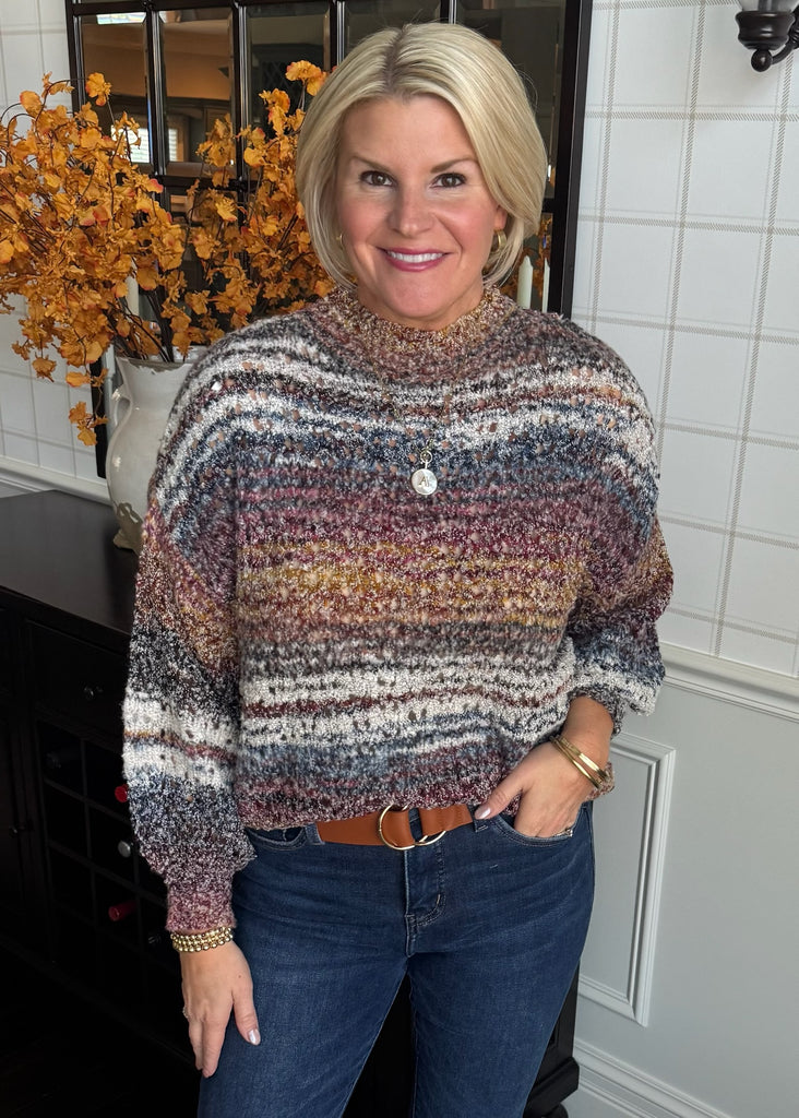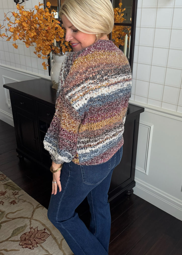 Mixed Yarn Distressed Boho Sweater - Small is backordered. It will be shipped when back in stock.