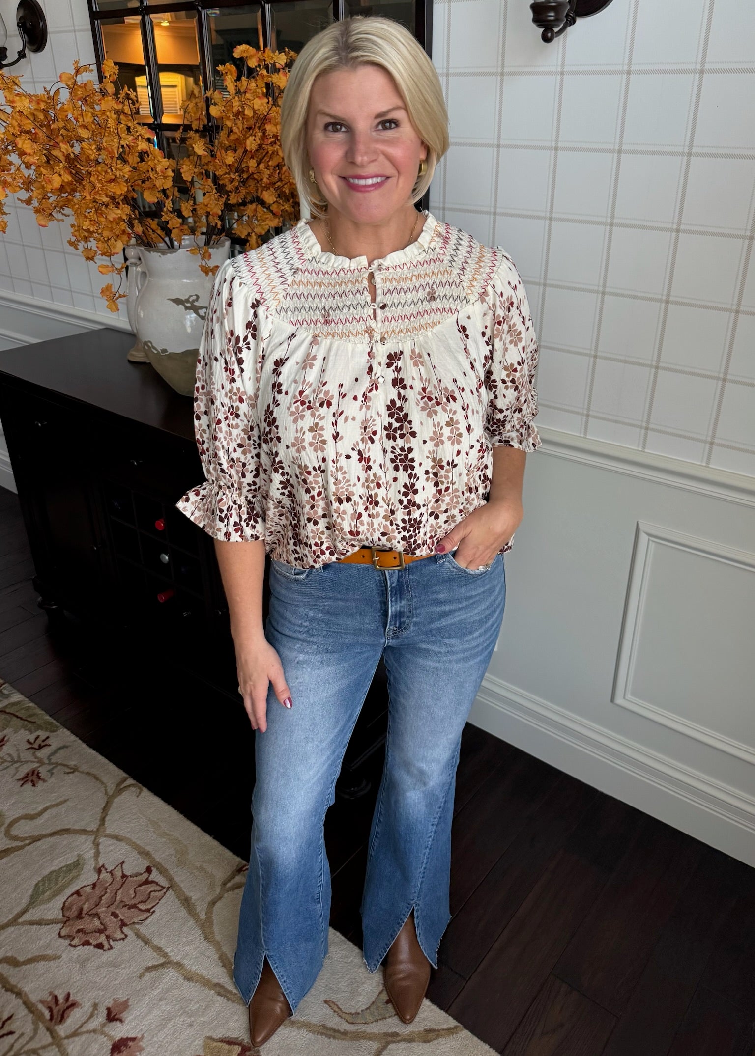 Smocked Yoke Floral Top - Small is backordered. It will be shipped when back in stock.