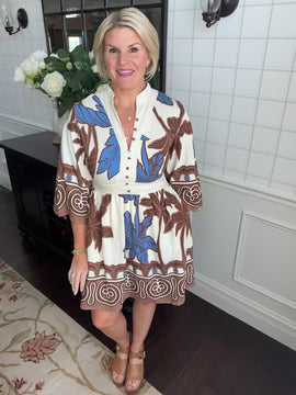 Cocoa-Blue Print Dress - Small is backordered. It will be shipped when back in stock.