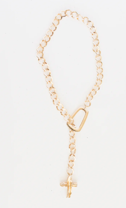 Chunky Gold Placed Adjustable Chain with cross pendant