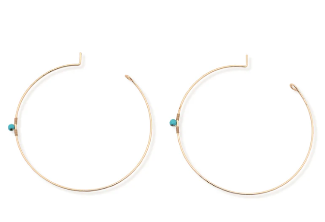 Oversized gold hoop with a single accent stone wrapped in wire, 2.5"