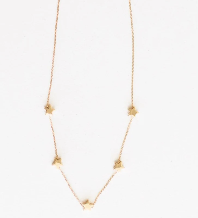 Gold necklace with three-dimensional star charms 16", 2" extender