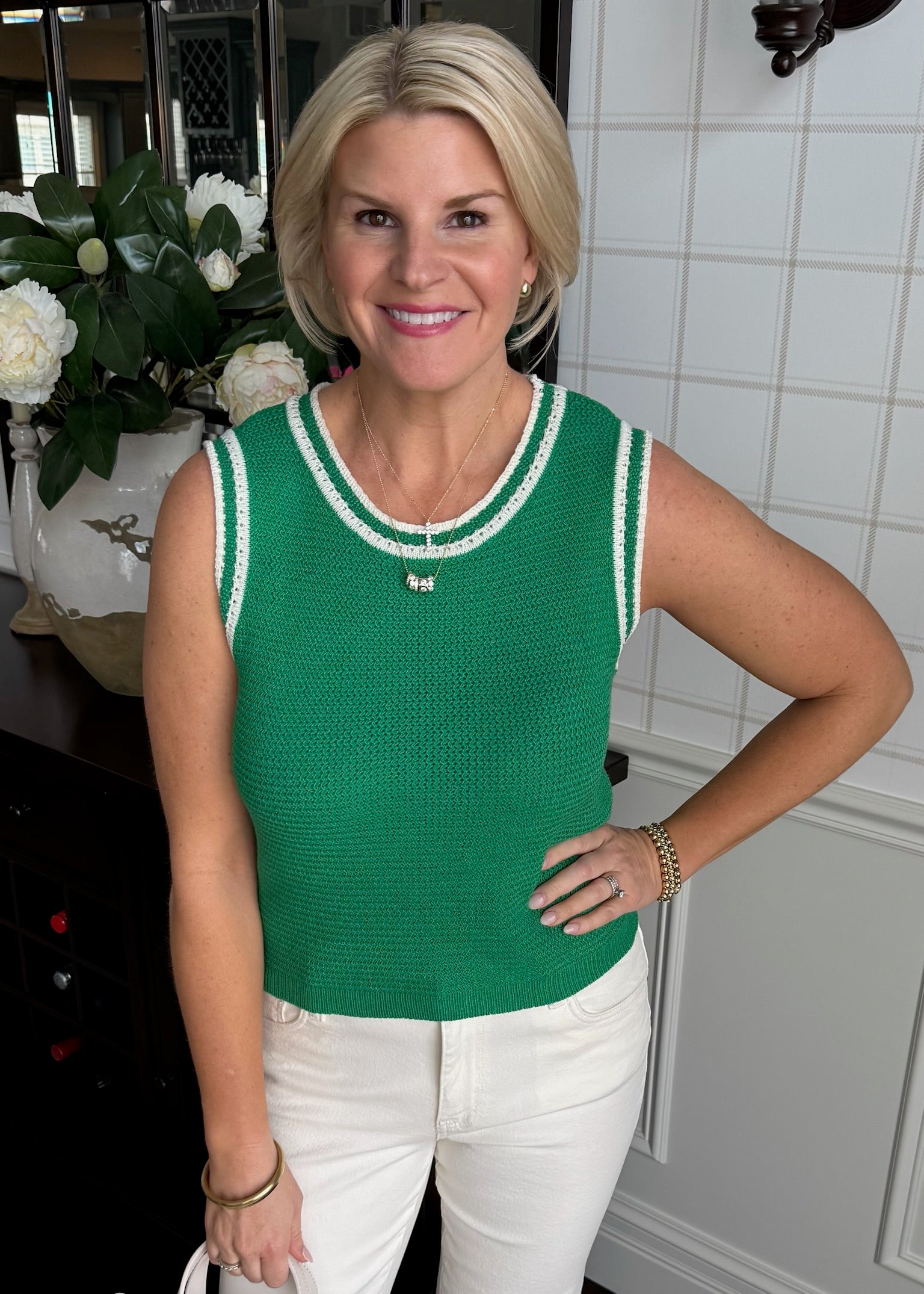 Love this green sweater! Cute under a jacket.