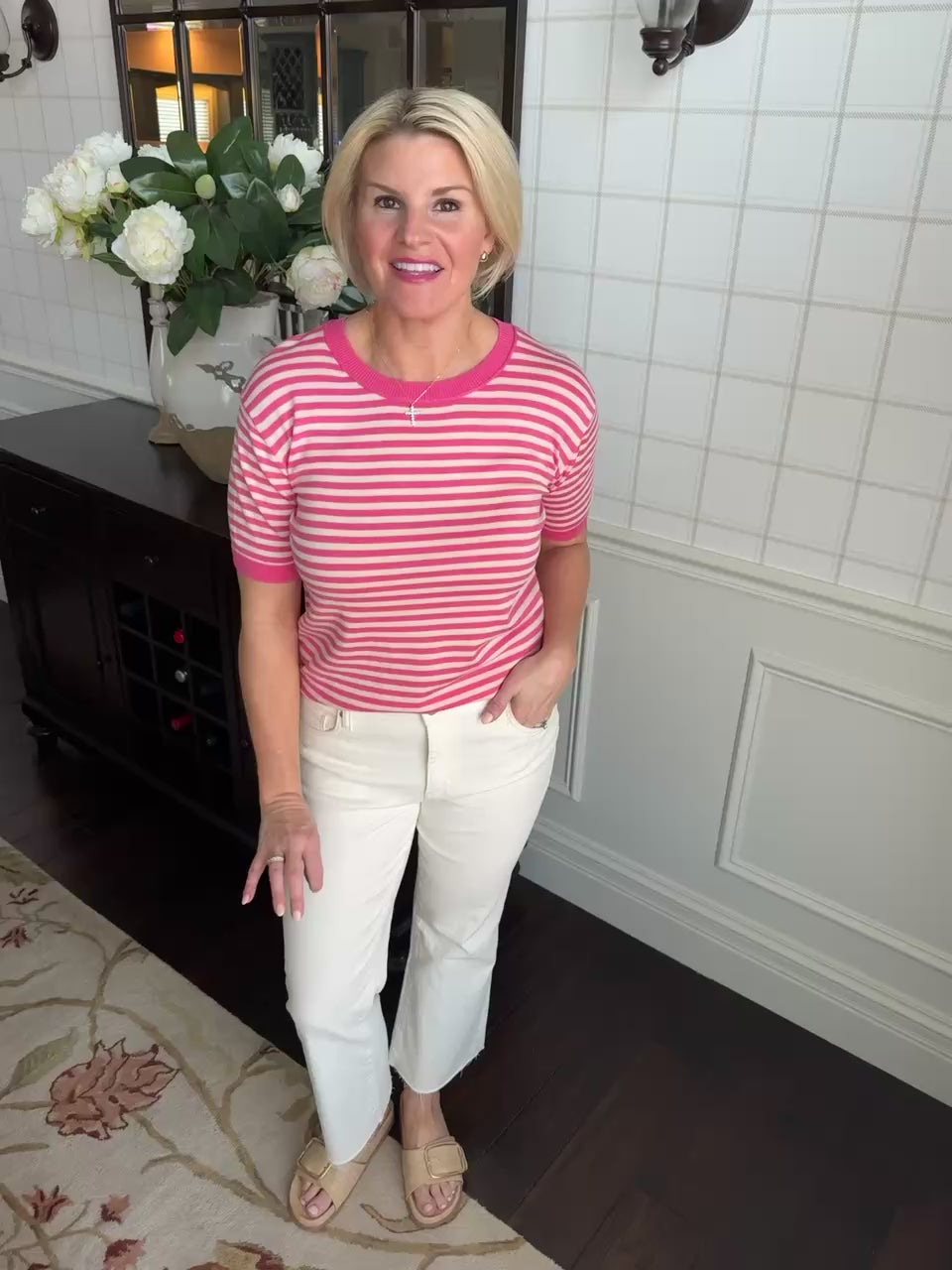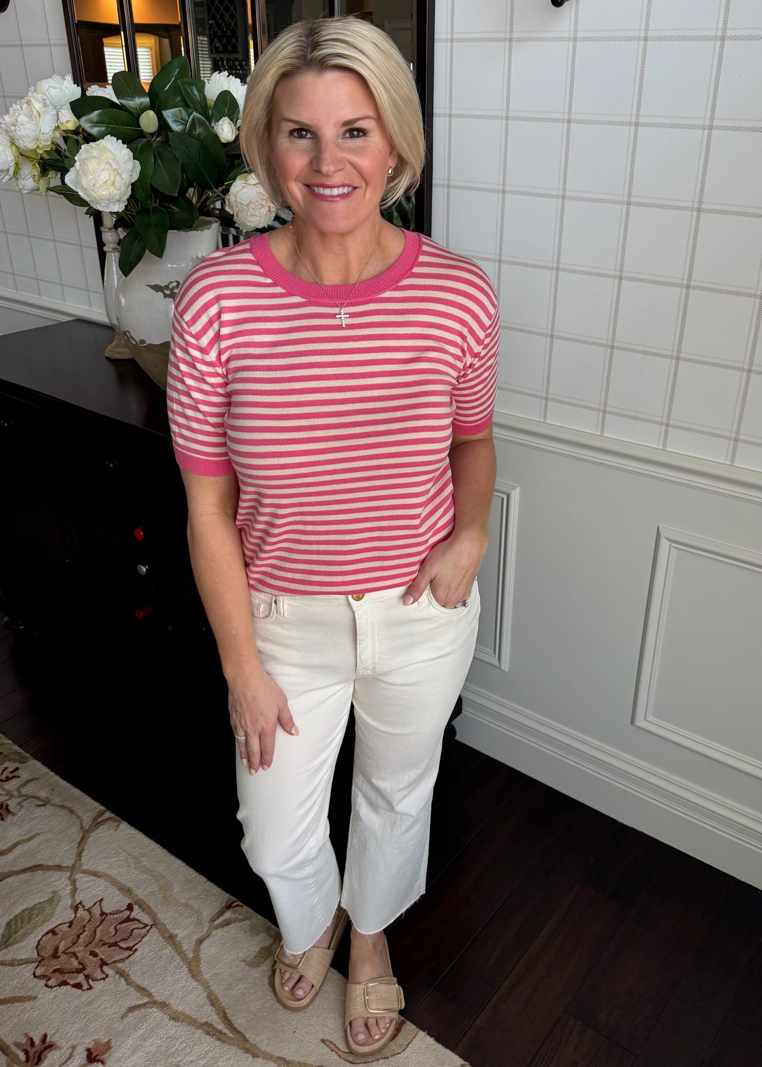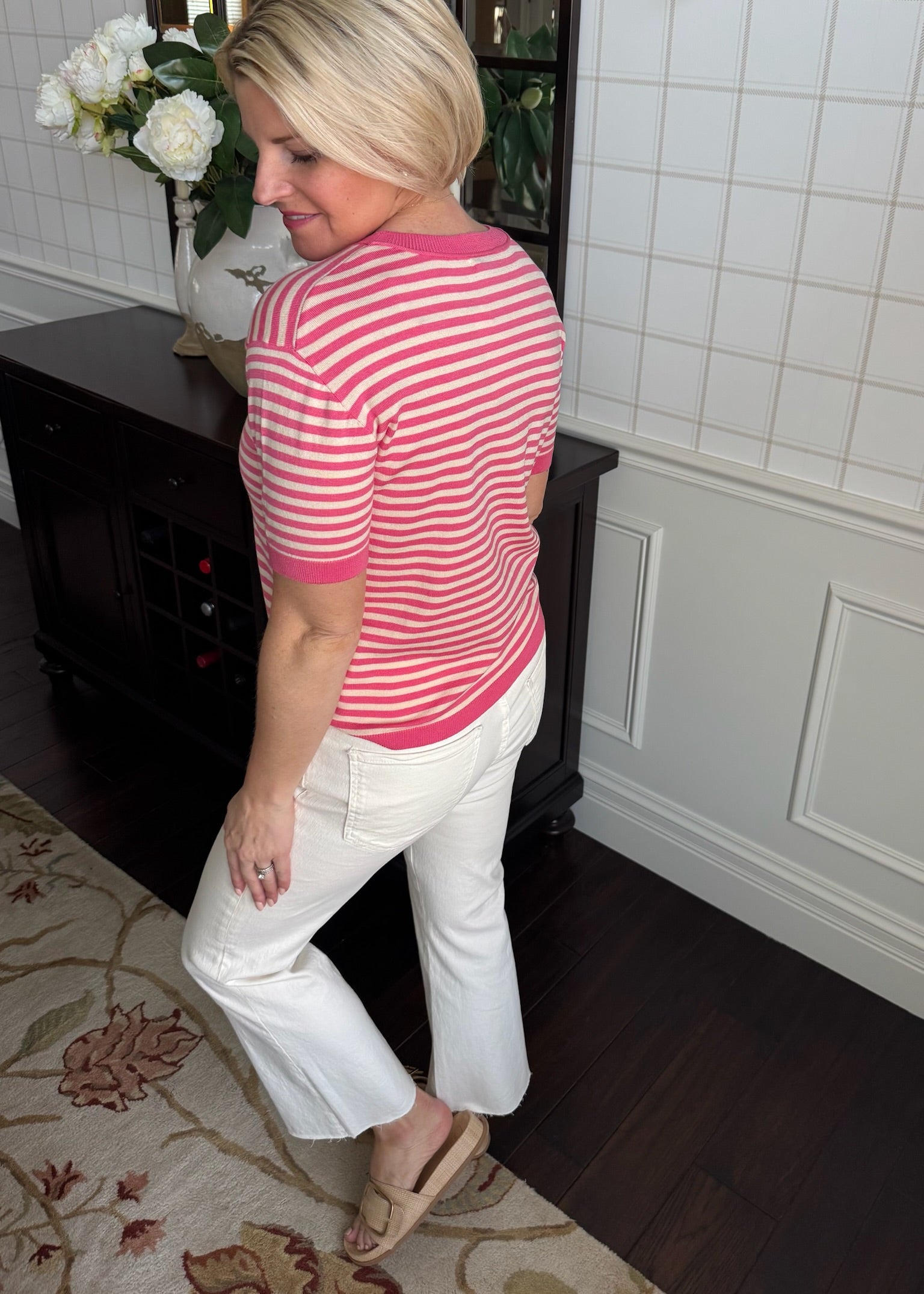 Pink Half Sleeve Striped Sweater - XL is backordered. It will be shipped when back in stock.