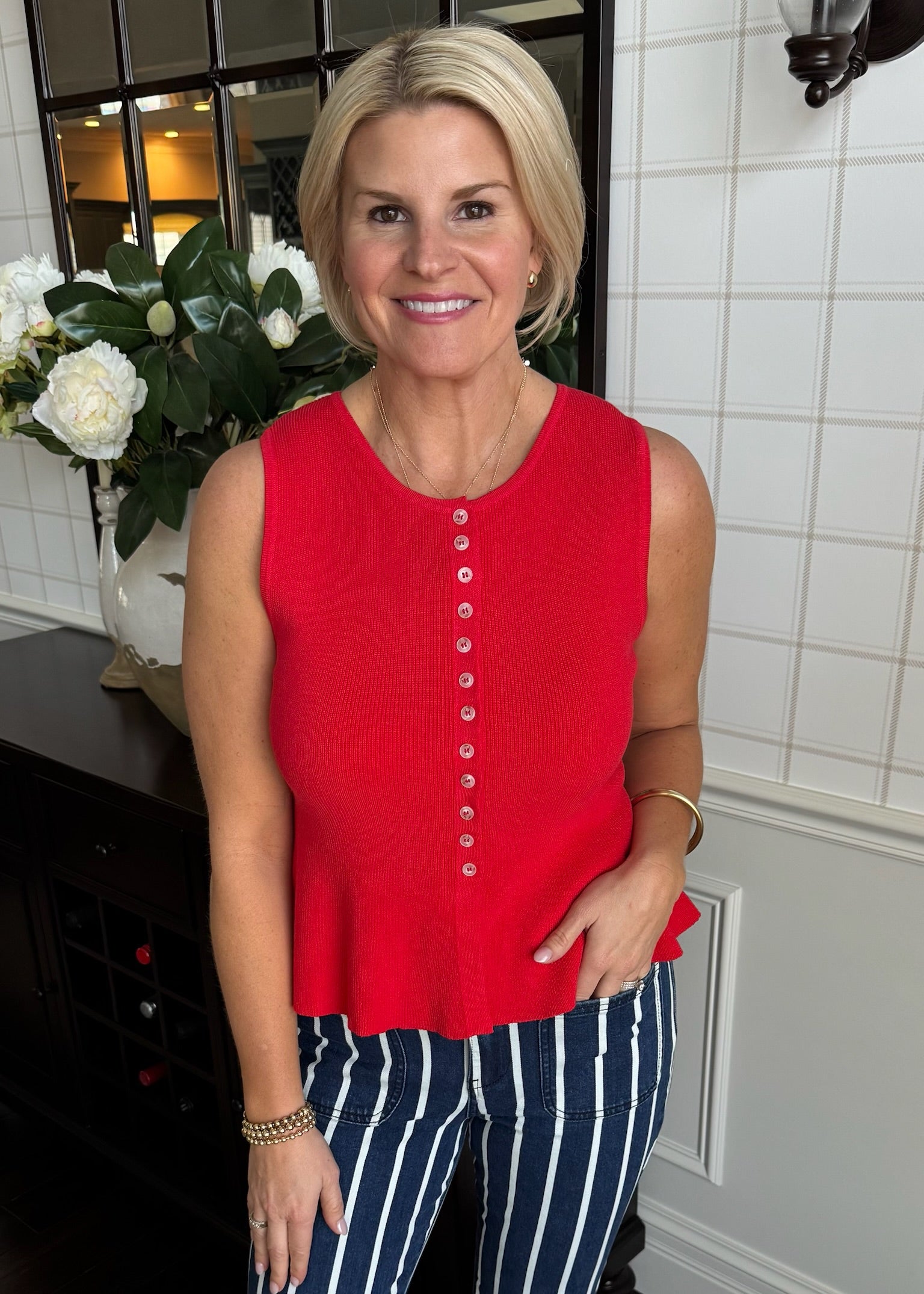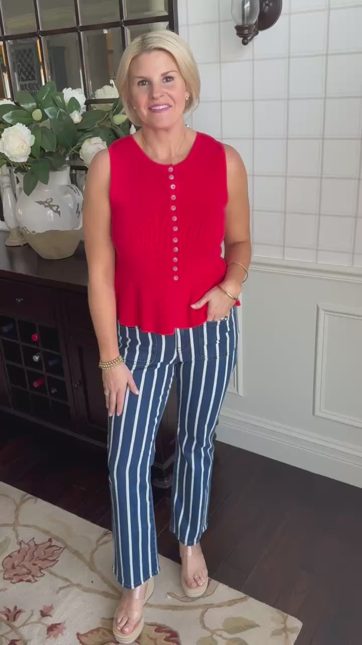 Cherry Peplum Sweater Tank - Small is backordered. It will be shipped when back in stock.