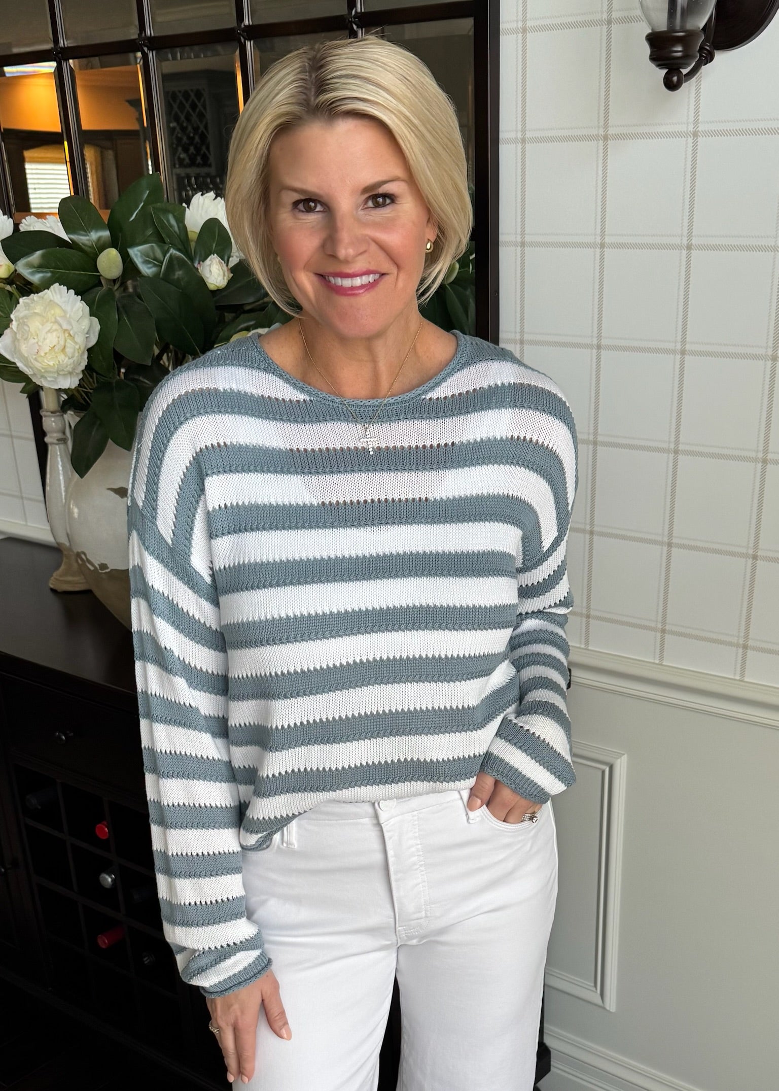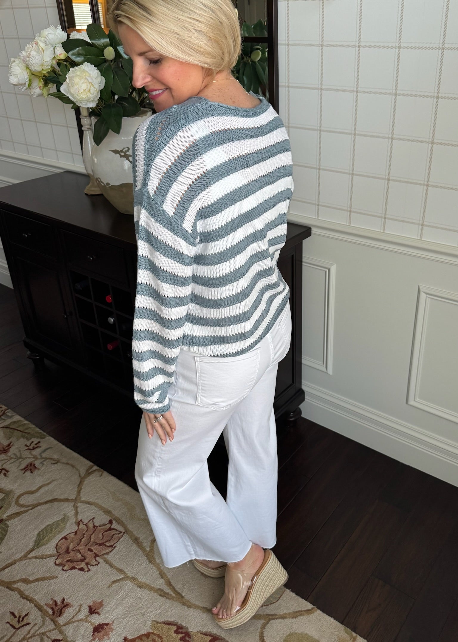 Striped Knit Sweater Cloud/White - Medium is backordered. It will be shipped when back in stock.