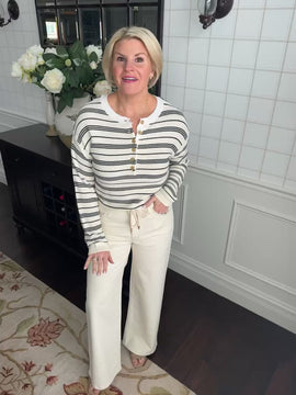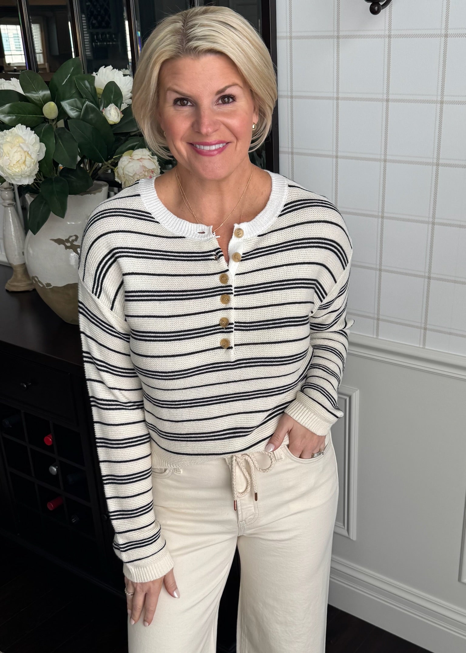 Sanctuary Striped Henley Sweater - XS is backordered. It will be shipped when back in stock.