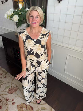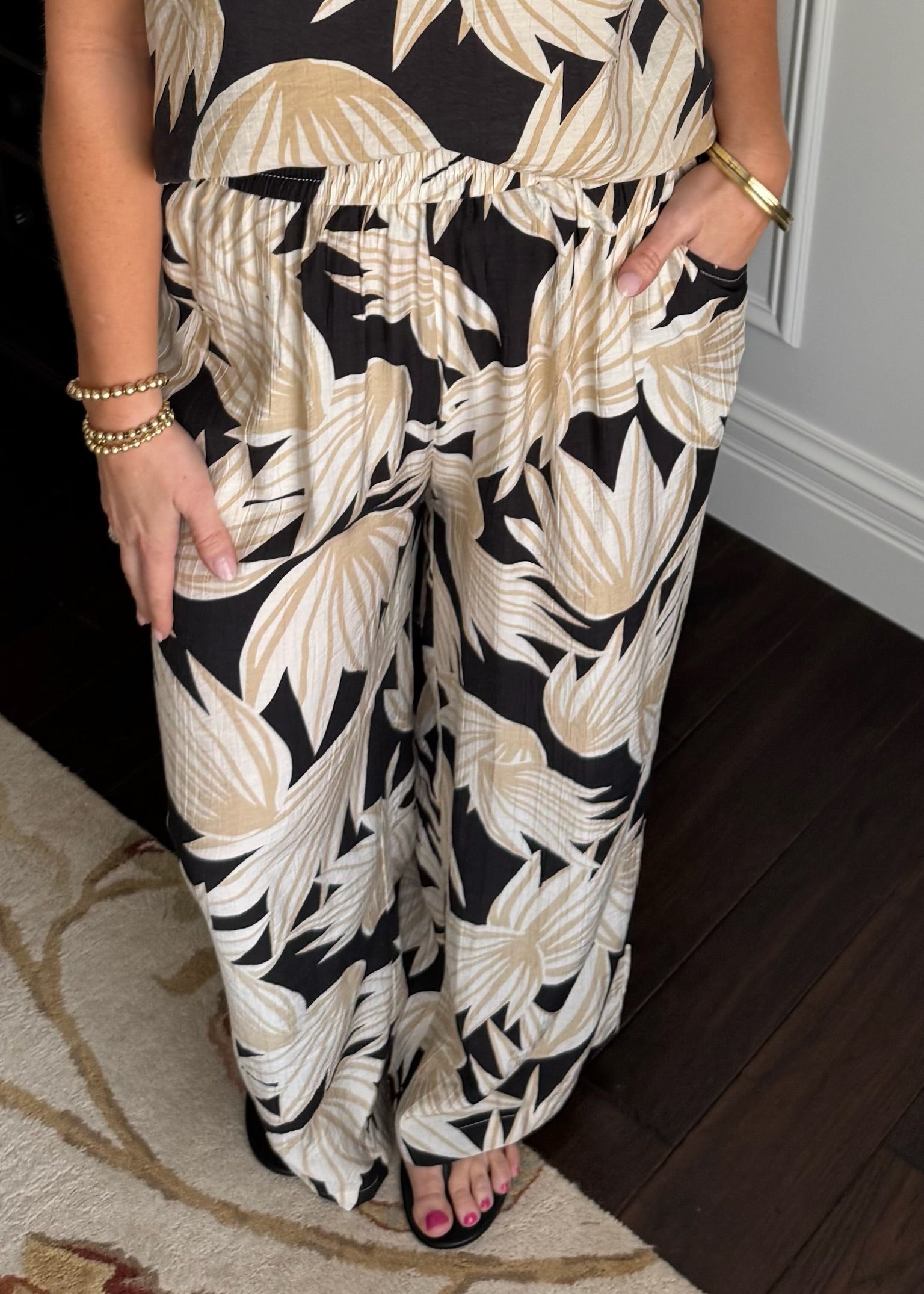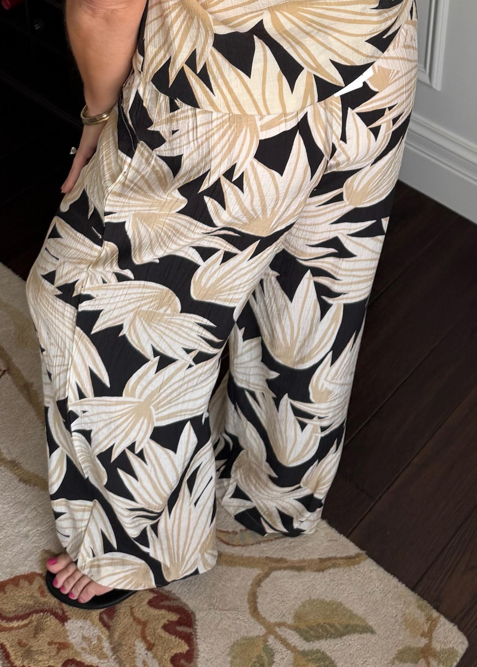 Love this tropical print pant. Features an elastic waist and super low and soft material.