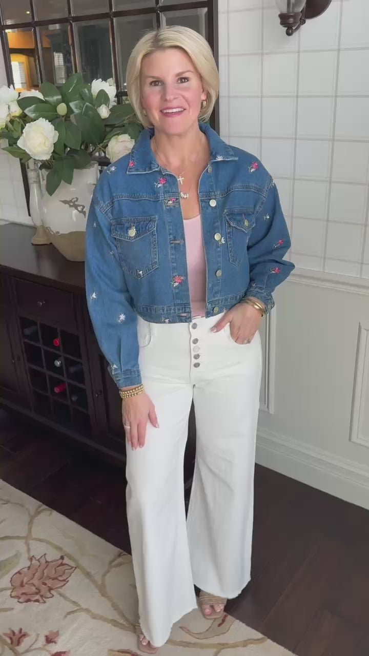 Cropped Floral Embroidered Jacket - XS is backordered. It will be shipped when back in stock.