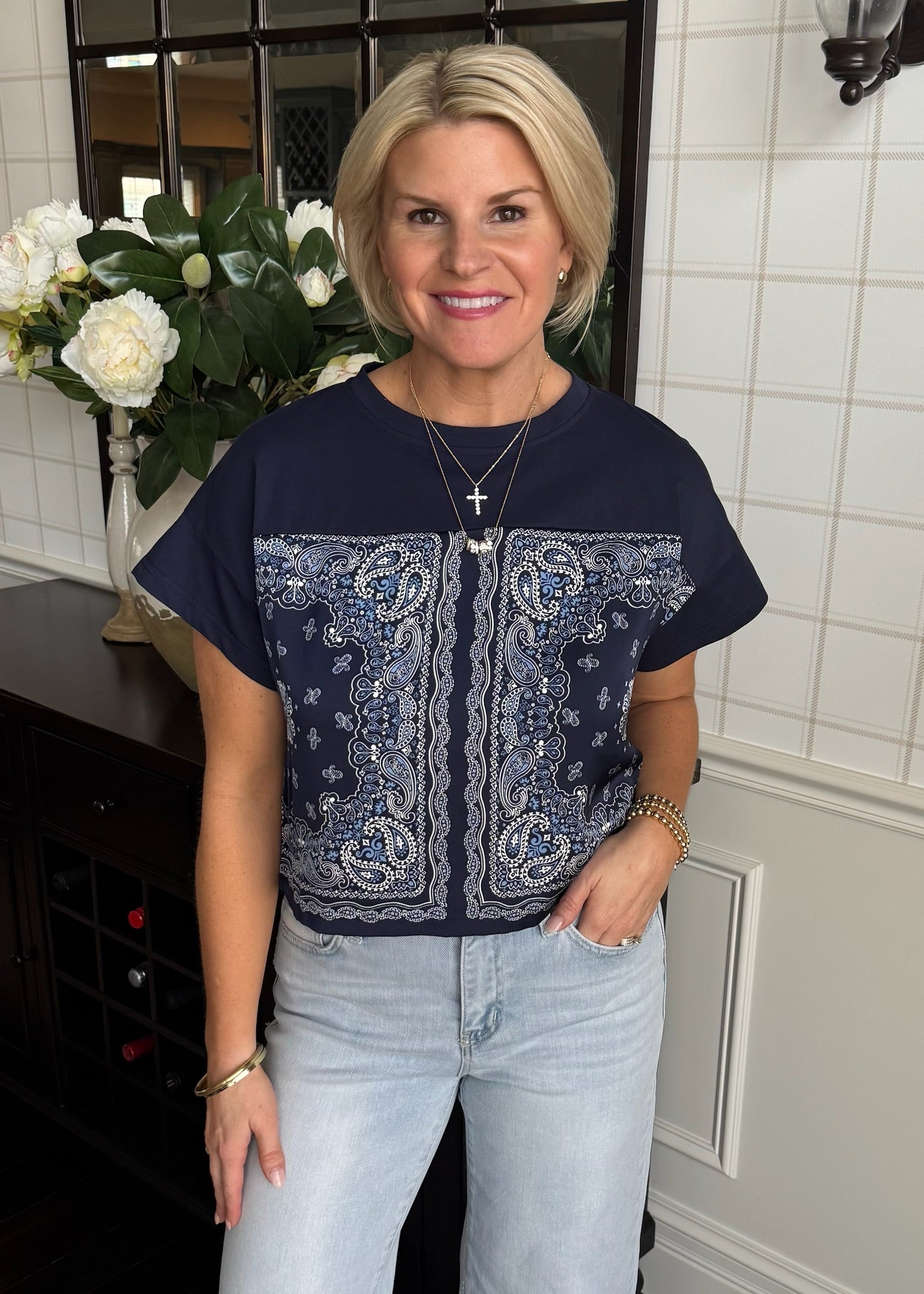 Mixed Media Bandana Print Tee - XS is backordered. It will be shipped when back in stock.