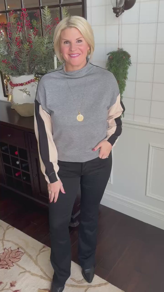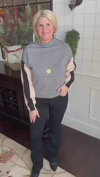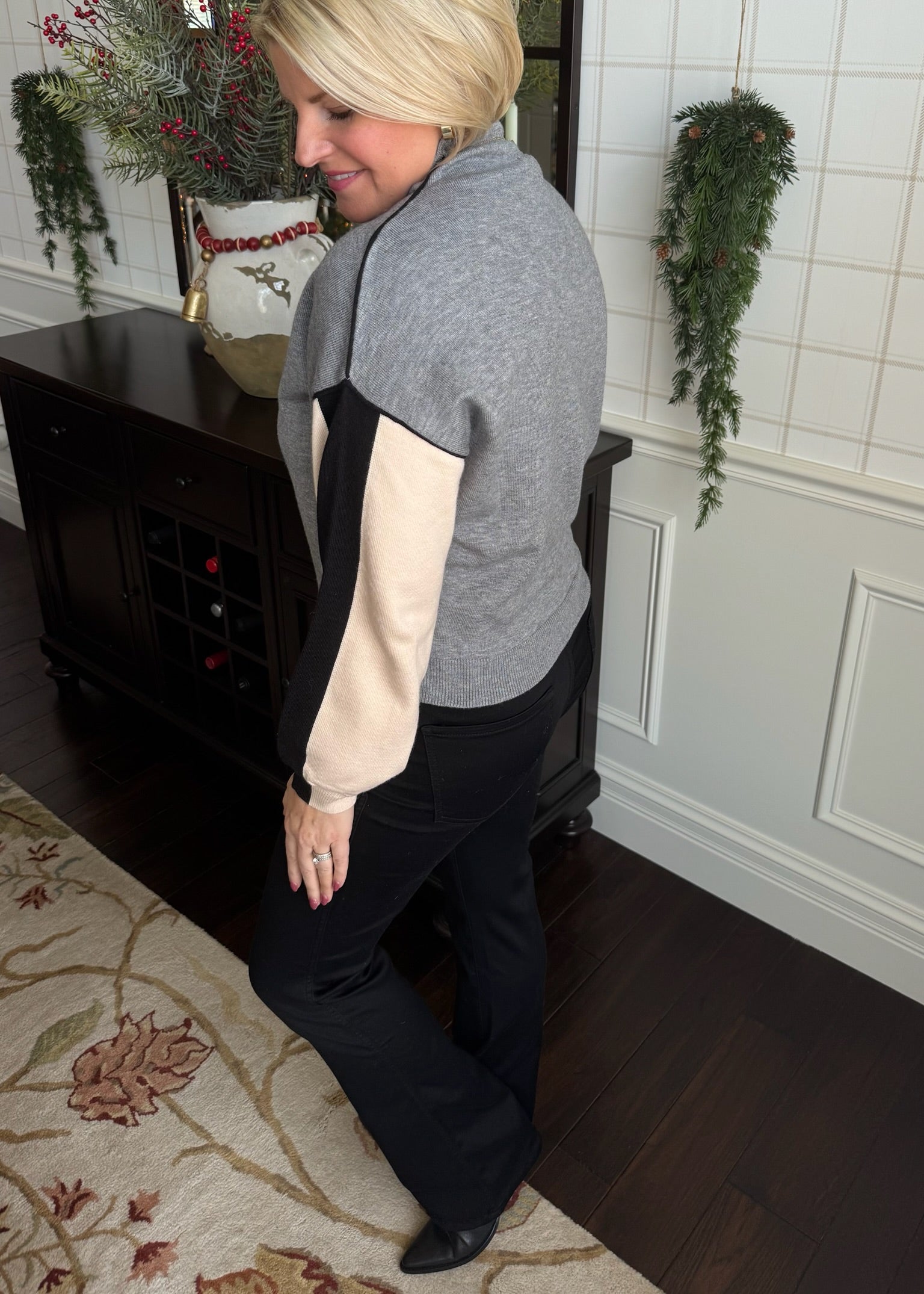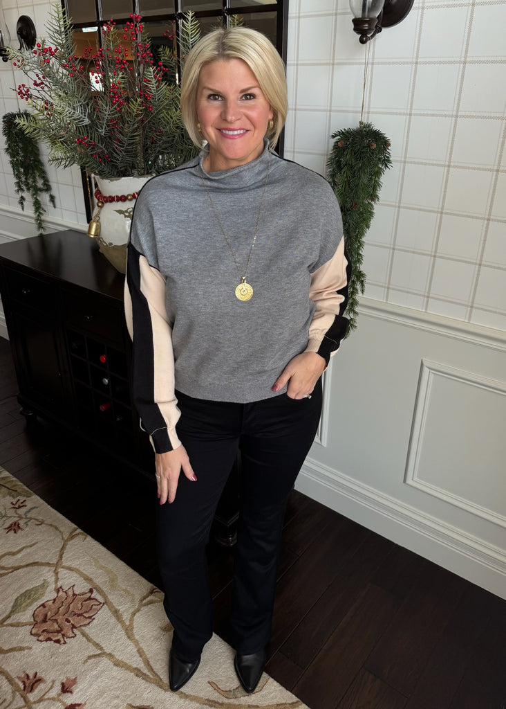 Colorblocked Mock Neck Sweater - XS is backordered. It will be shipped when back in stock.
