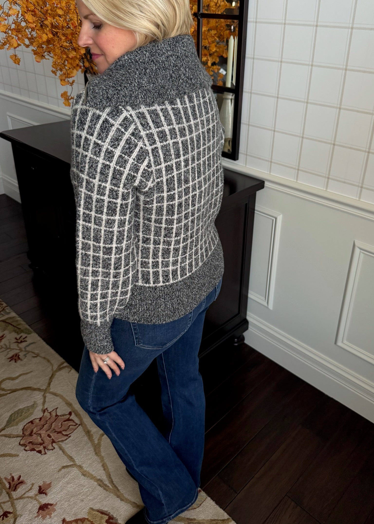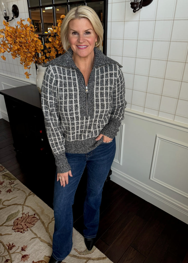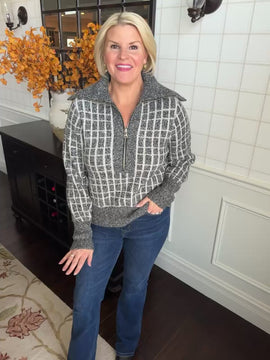 You won't believe the quality on this knit. Buttery soft and thick! Such a cute sweater for winter!