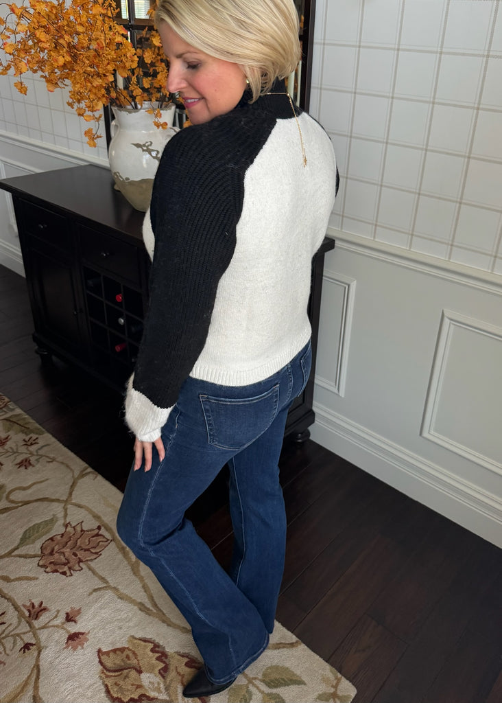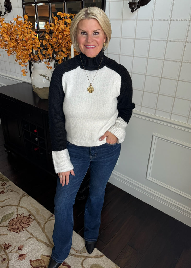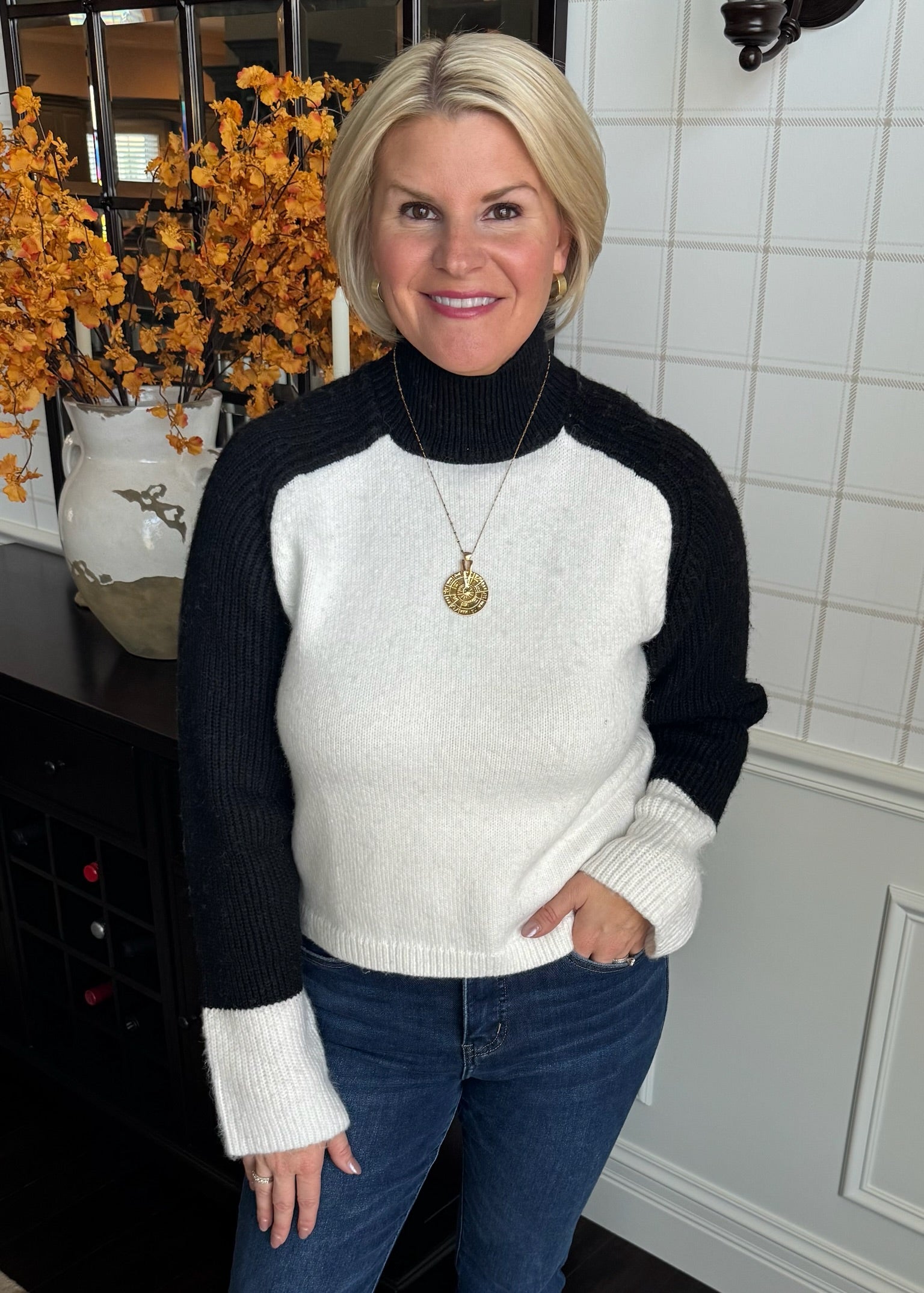 Super cozy black and white mock neck sweater. Soft and cozy = the perfect sweater!