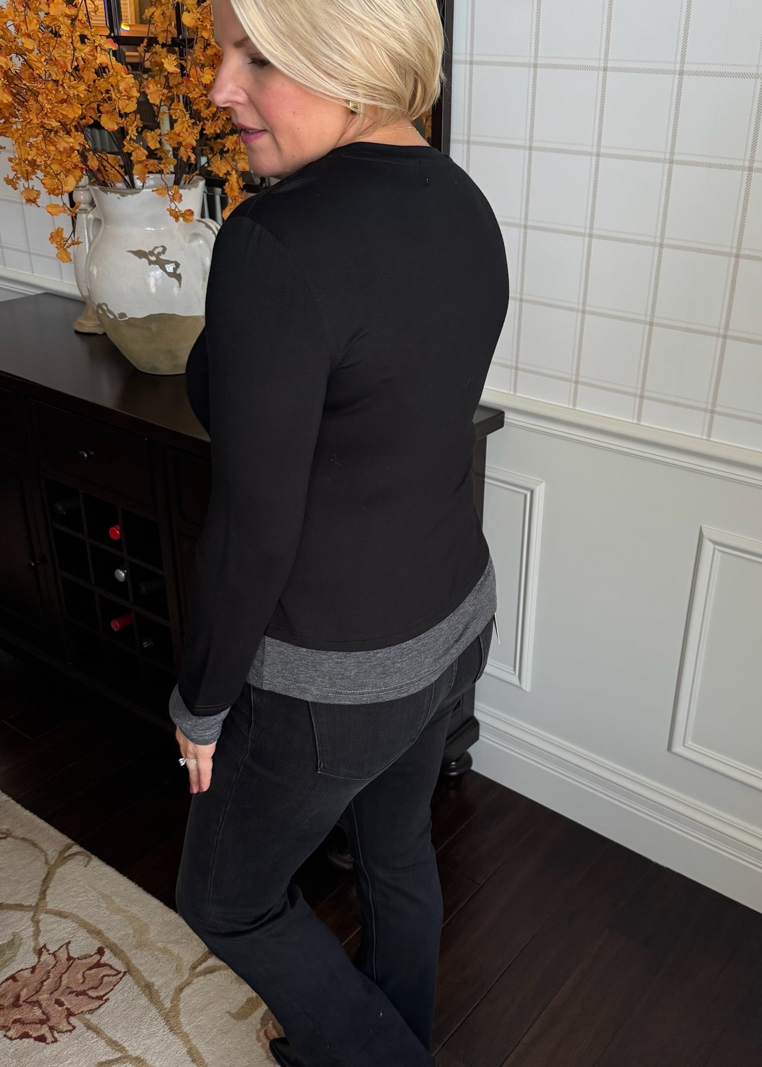 Are you looking for a layering piece that doesn't actually require you to layer? You'll love the Izzy top. Stylish and comfortable, this layered tee adds a sophisticated twist to your wardrobe.