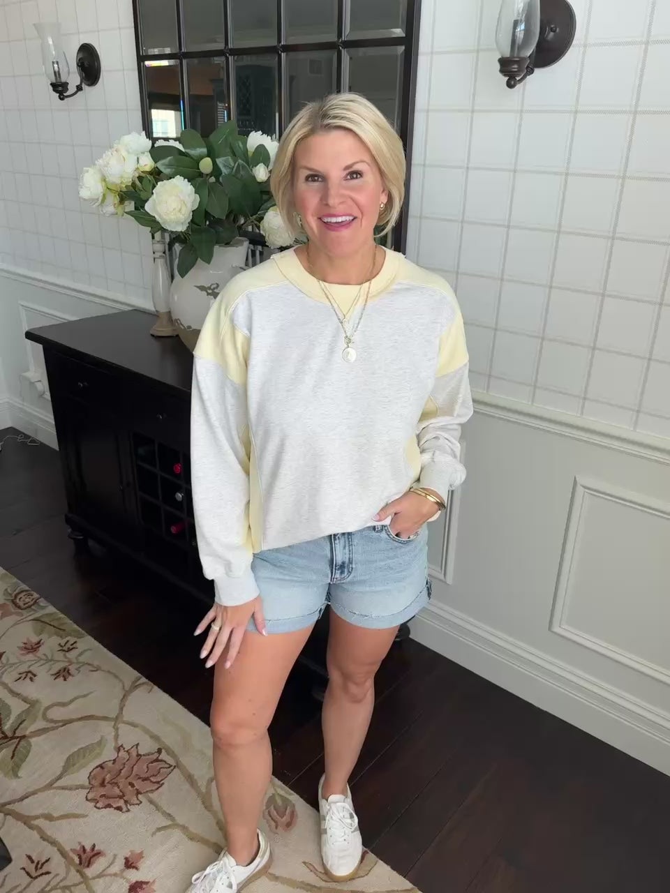 This exposed seam color block sweatshirt is so cozy and cute! Love the oversized fit and on trend yellow color for spring.